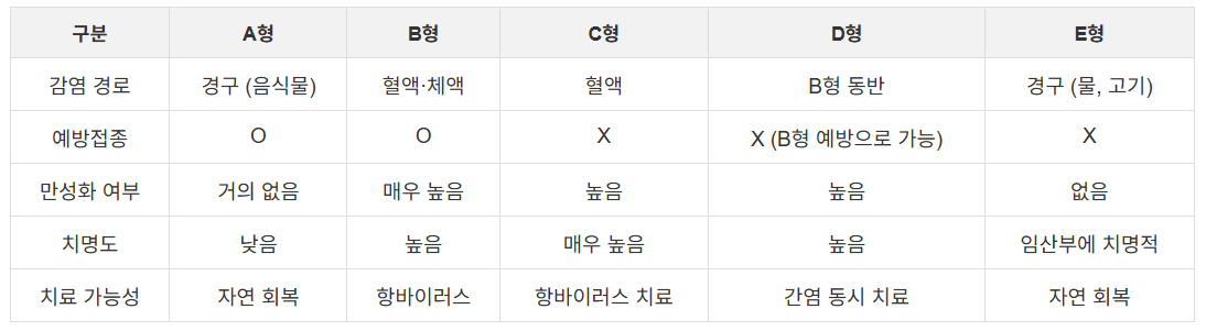 📍 간염 종류 차이점 한눈에 보기