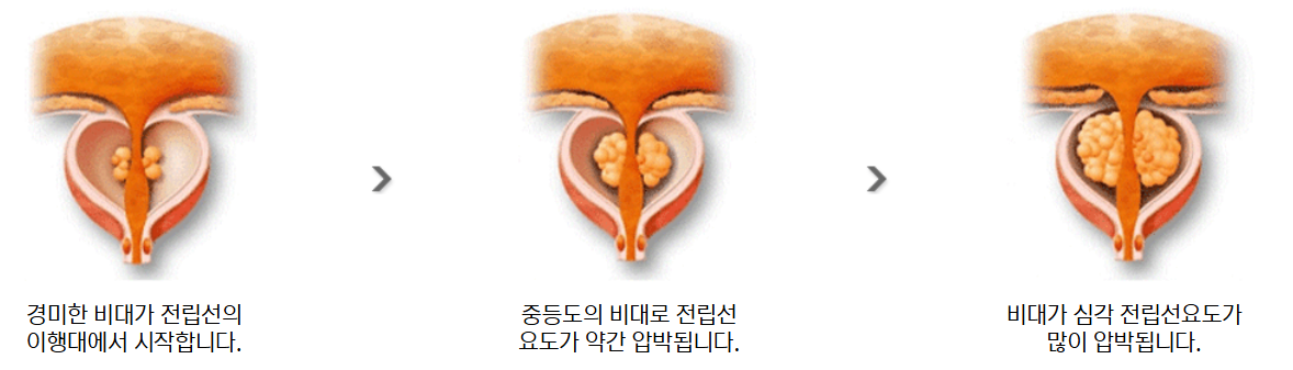 - 요폐 - 전립선이 요도를 압박해 소변이 거의 나오지 않는 극단적인 상태.